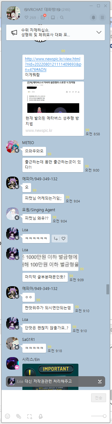 | ★[오픈채팅]우왁굳/이세계아이돌/하쿠광고/대중화의속도/서브컬쳐 (0) | 2022.08.05 |