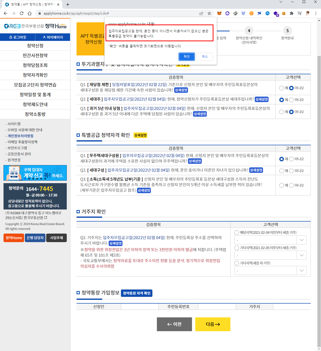 민영아파트 -> 1인가구 신청 가능하도록 개정됨.