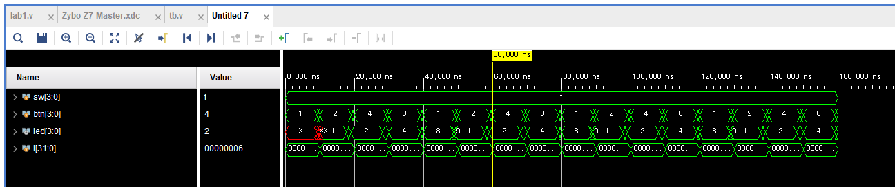10ns마다 btn을 조작해서 led를 조작한다.