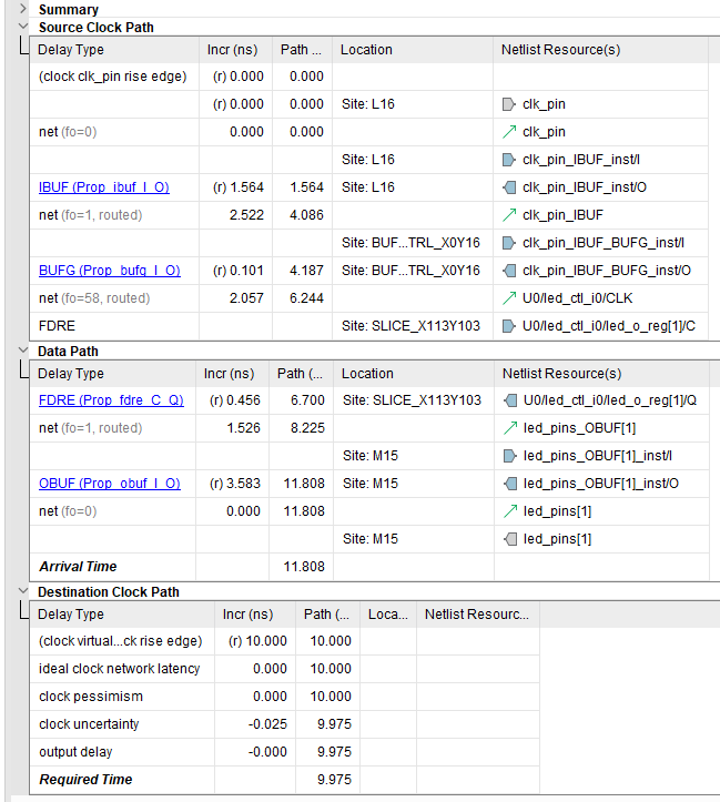 timing report는 다음과 같은 4개의 section으로 이루어져있다.
