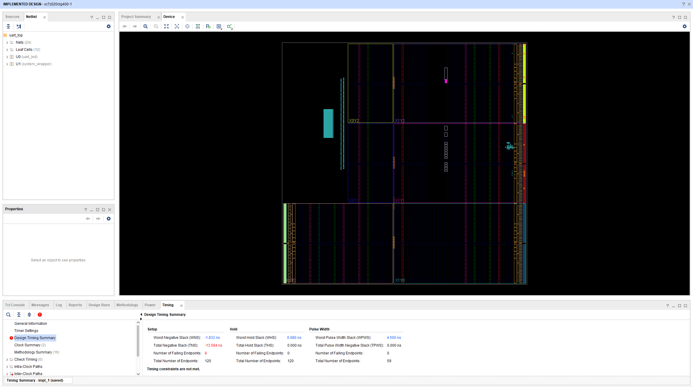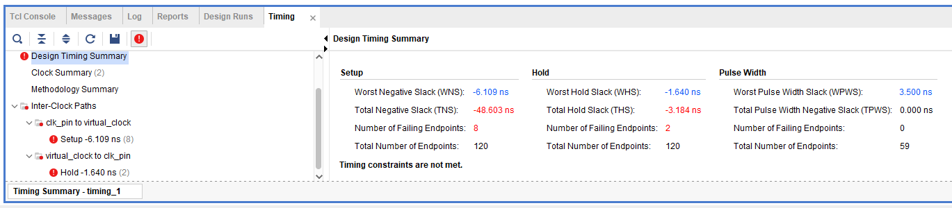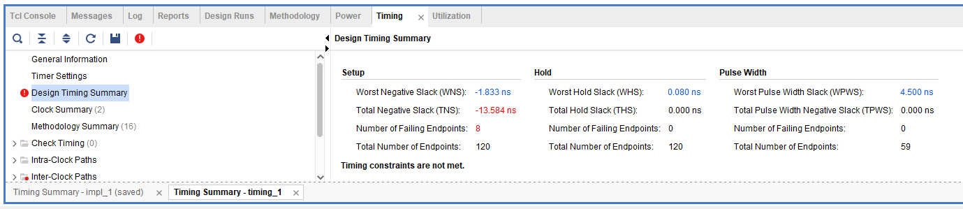 아직 setup time violation이 해소되지 못하였고