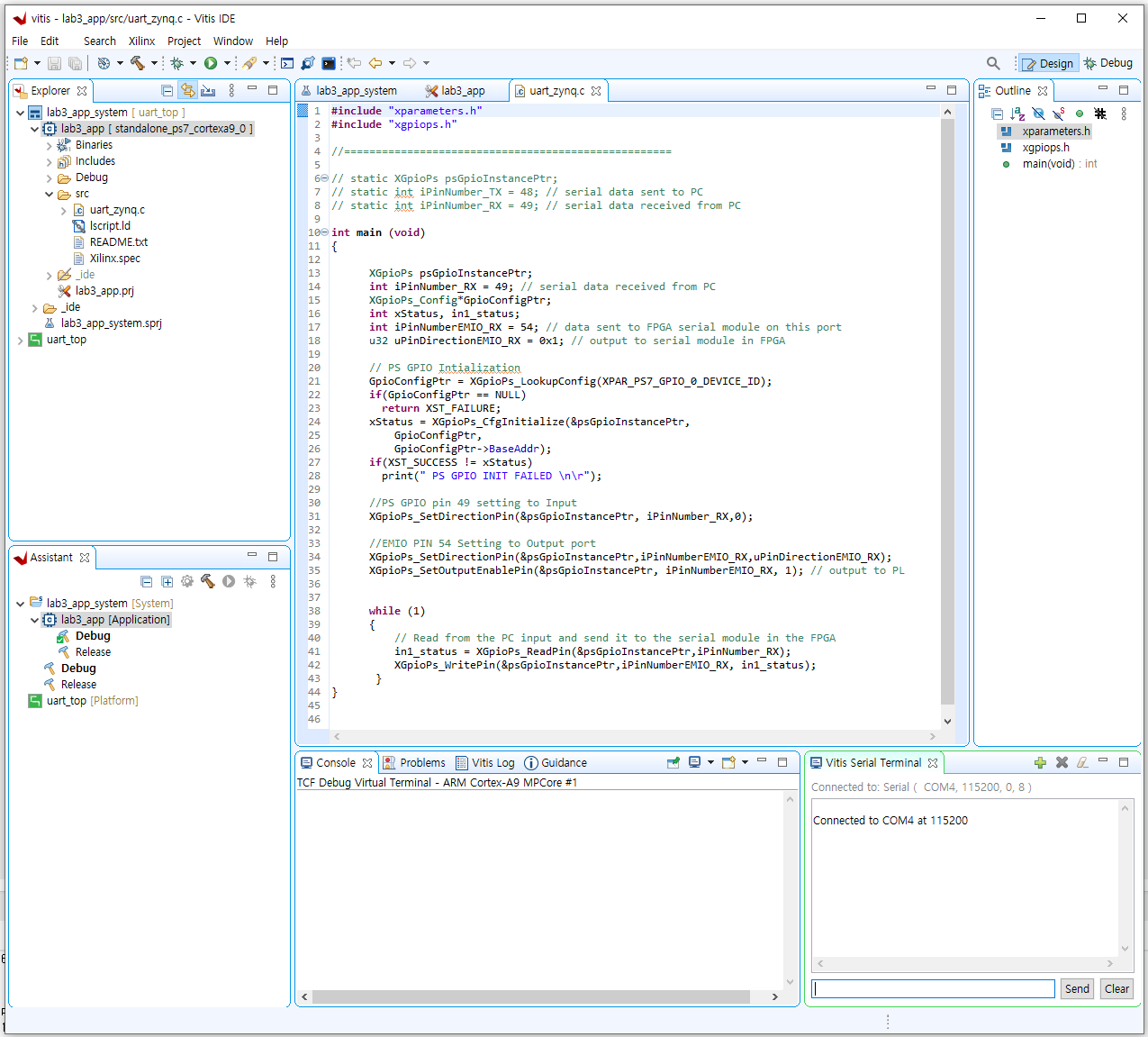 u32 uPinDirectionEMIO_RX = 0x1; // output to serial module in FPGA