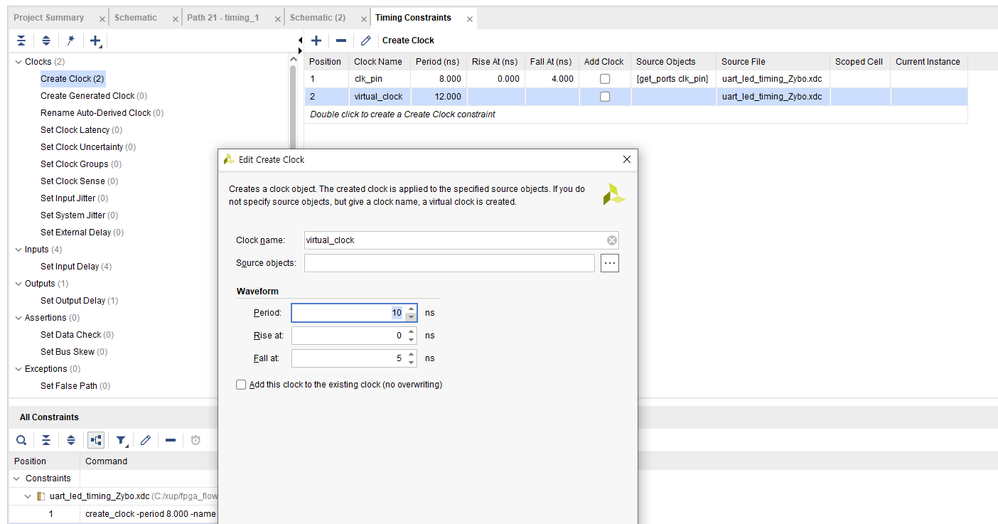 이 virtual clk을 12ns에서 10ns로 수정해준다.