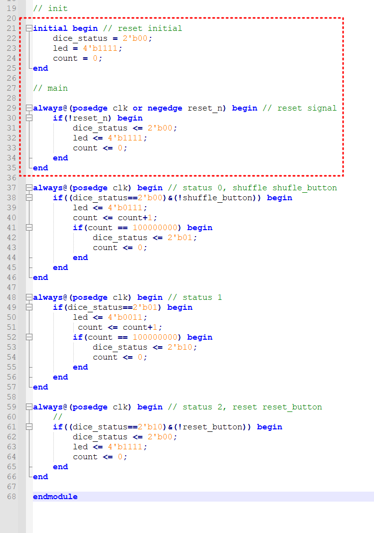always@(posedge clk or negedge reset_n) begin // reset signal