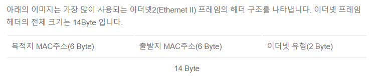 이더넷 프레임 구조 분석 예제 이더넷 프레임(Ethernet Frame) 헤더 구조 정보가 저장되는 구조체 포맷에 대해 설명드립니다. 그리고 예제 소스코드를 이용하여 어떻게 헤더 내용을 출력 할 수 있는