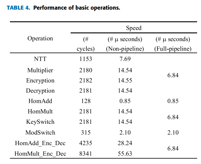 [1] FHE 연산의 가속을 위해 병렬처리된 FPGA 가속기를 사용했으며 CPU 대비 향상시켰다.