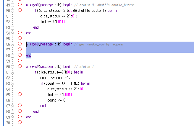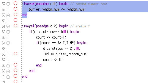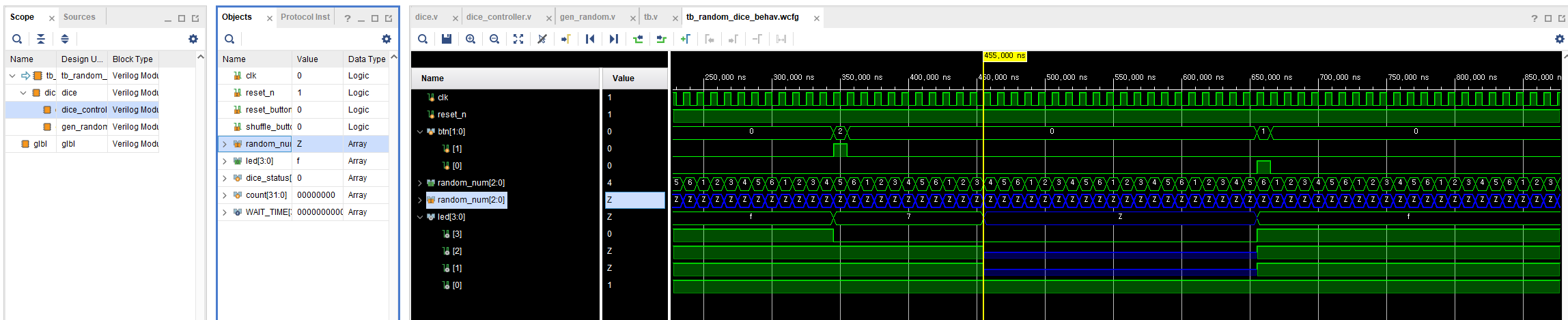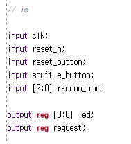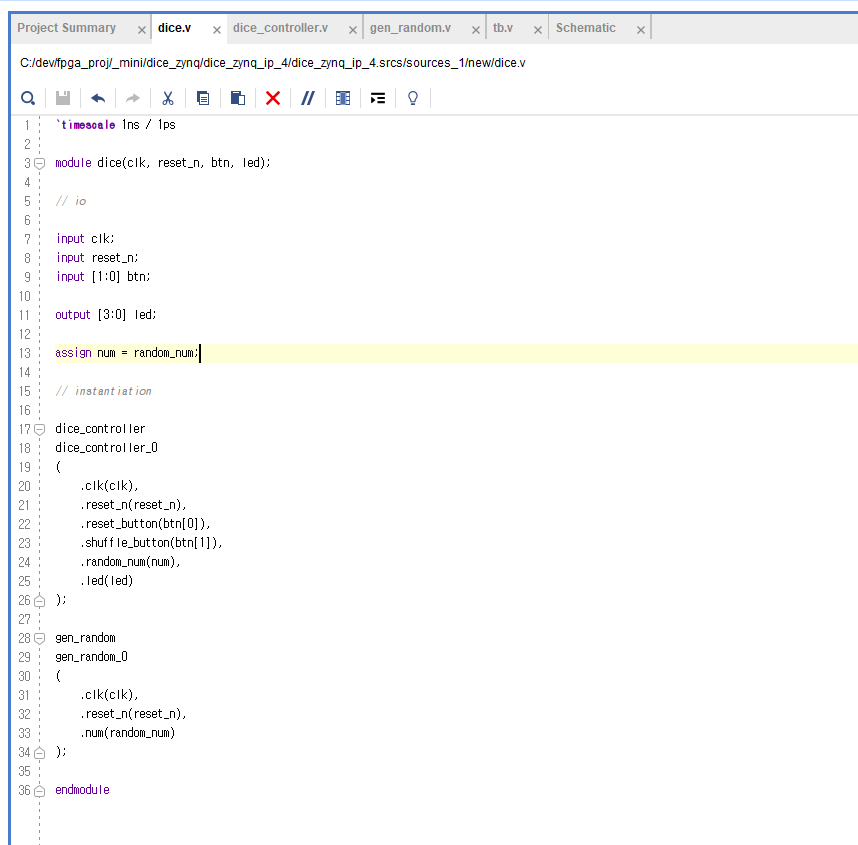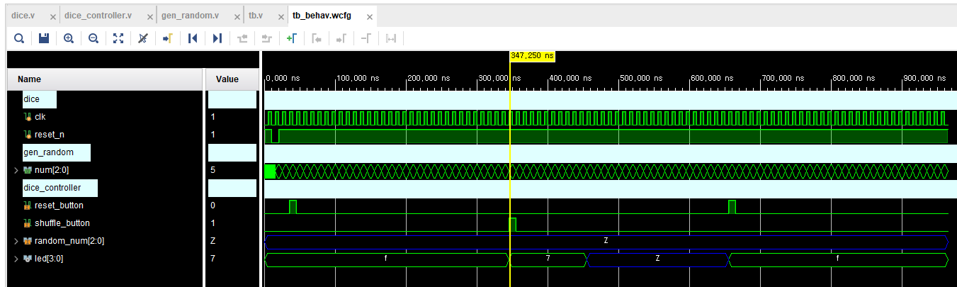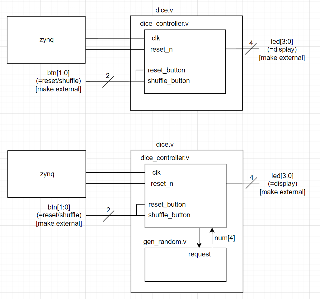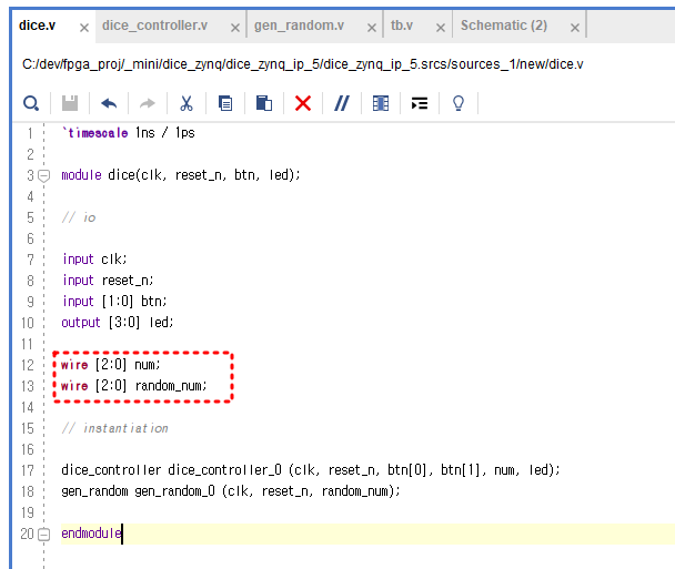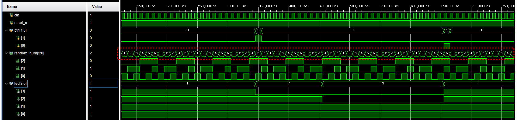 dice_controller dice_controller_0 (clk, reset_n, btn[0], btn[1], num, led);