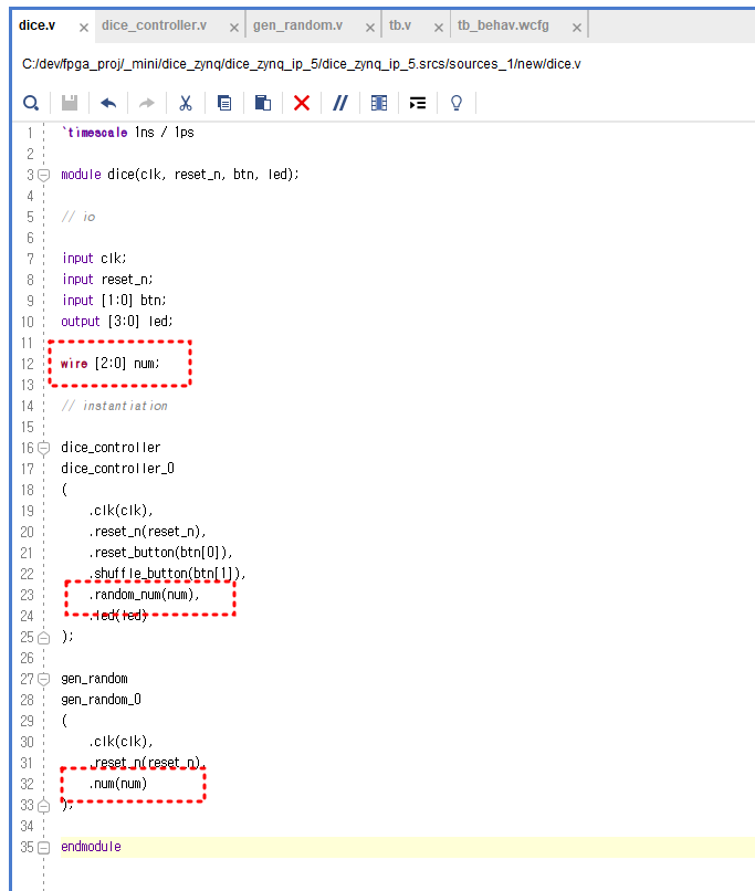 num은 output 이므로 input port가 연결되는 것이 아니다.