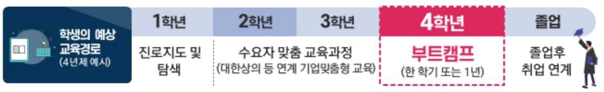 4학년 때 어떤 방식으로든 부트캠프를 1년 동안 듣는다. 고시 기준으로는 일종의 취업 학원이다.