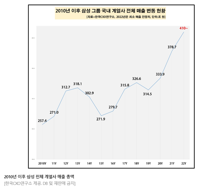(서울=연합뉴스) 김철선 기자 = 올해 삼성그룹의 전체 매출이 처음으로 400조원을 넘을 것이라는 분석이 나왔다.
