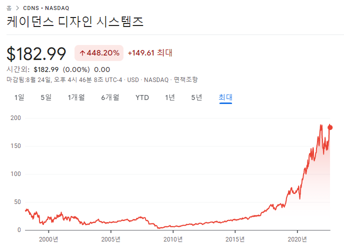 (2020.8.22.토) 케이던스 디자인 시스템즈 EDA(Electronic Design Automation) 소프트웨어 회사. 즉, 반도체 설계 자동화 소프트웨어를 만드는 회사이다. NASDAQ100과 S&P500지수의 구성요소. 반도체를 설계한 다..