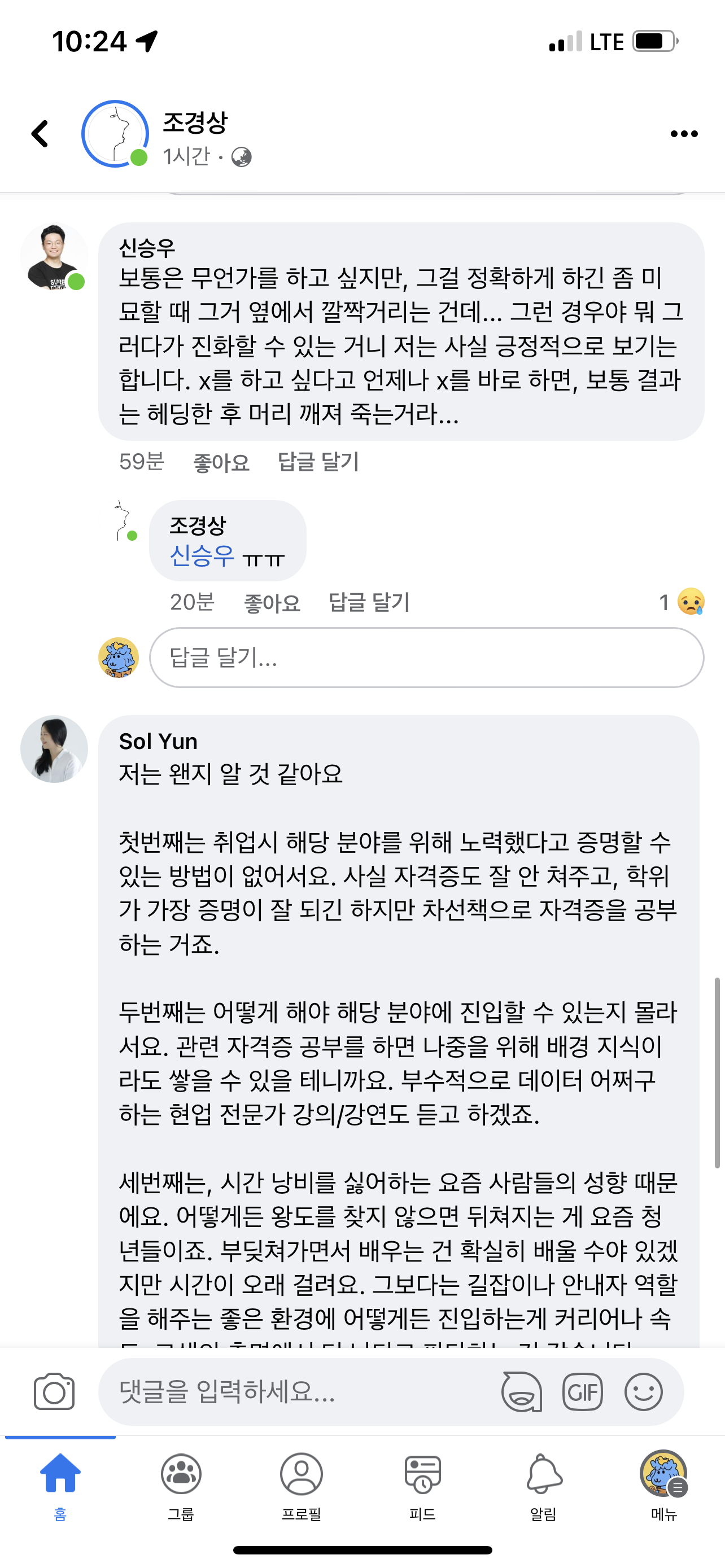 그러니까 요지는 뭘 하고 싶으면 실제로 그걸 하면 되고 어떤 생태계가 궁금하면 그 생태계의 가장 중심이면서 지저분한 일을 할 수 있는걸 해야한다. 만약 그걸 하지 않으면 실제로 하고 싶지 않은거에 가깝다.