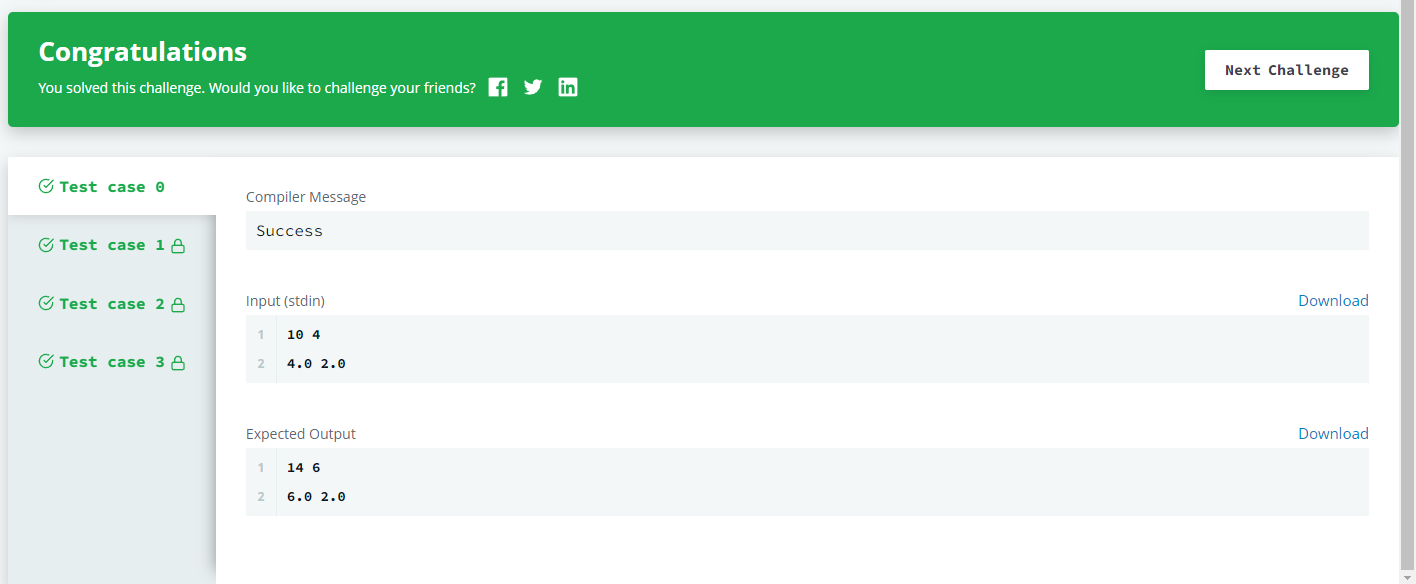 printf("%.1f %.1f", num3+num4, num3-num4);