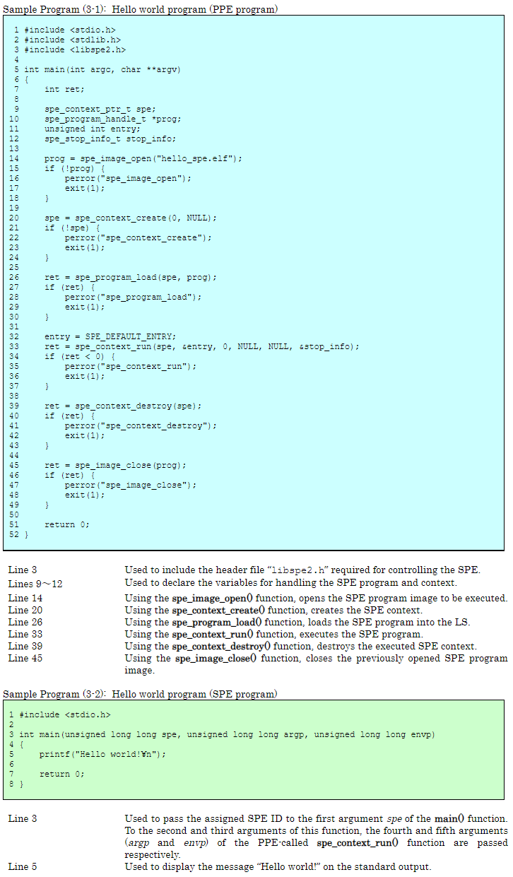예시로. Hello World 프로그램을 PPE 상황과 SPE 상황을 비교하면 다음과 같다.