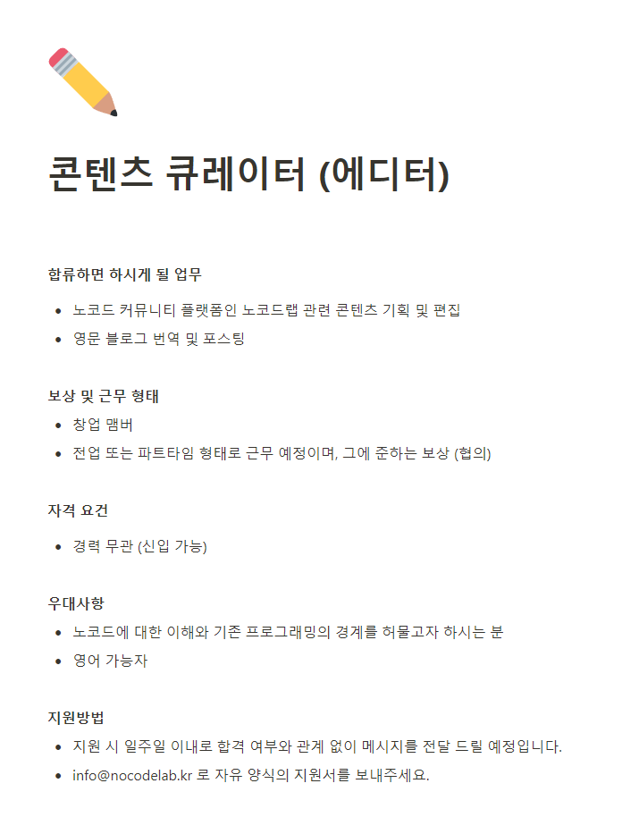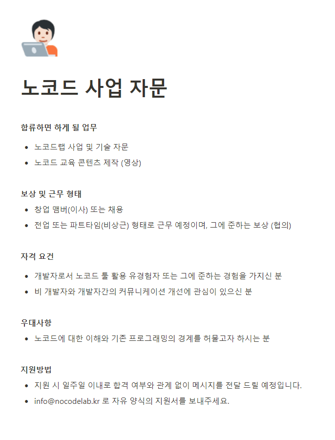 노코드랩에서 함께 성장 할 멋진 동료를 찾습니다.