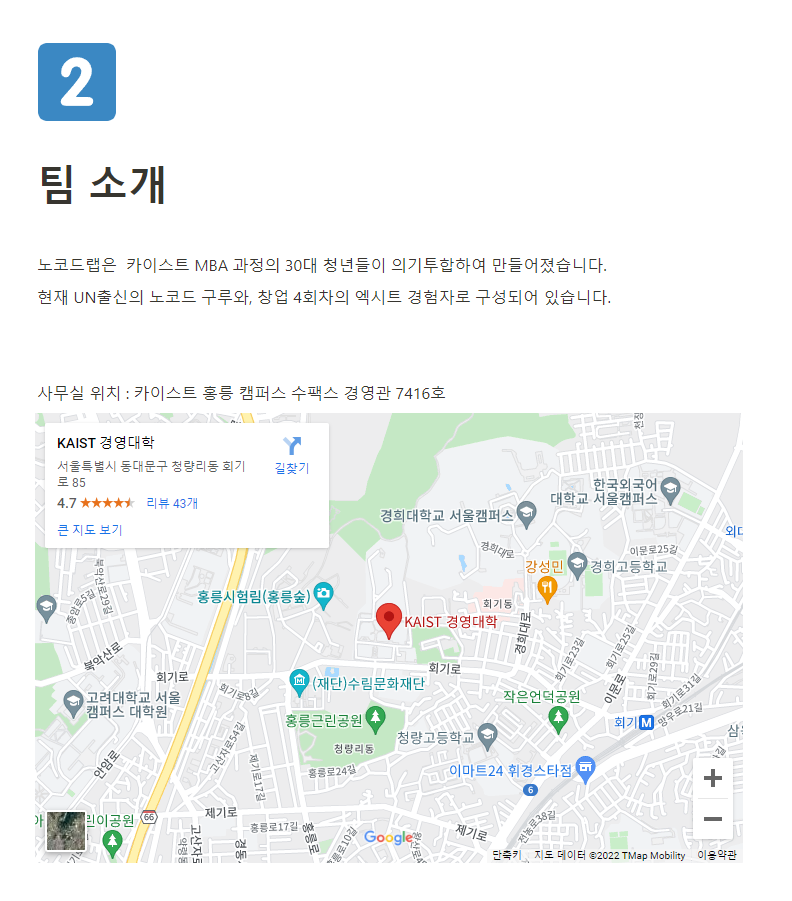 노코드랩은 카이스트 MBA 과정의 30대 청년들이 의기투합하여 만들어졌습니다.