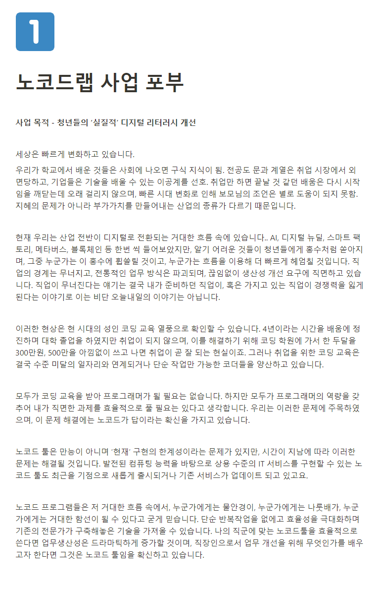 노코드랩 사업 포부
