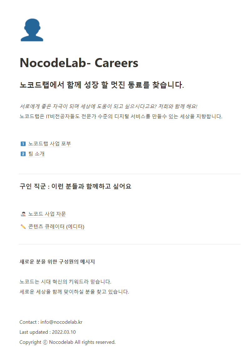 https://button-ragamuffin-357.notion.site/NocodeLab-Careers-796e976e224b455ba445ba5e6d15c8bb