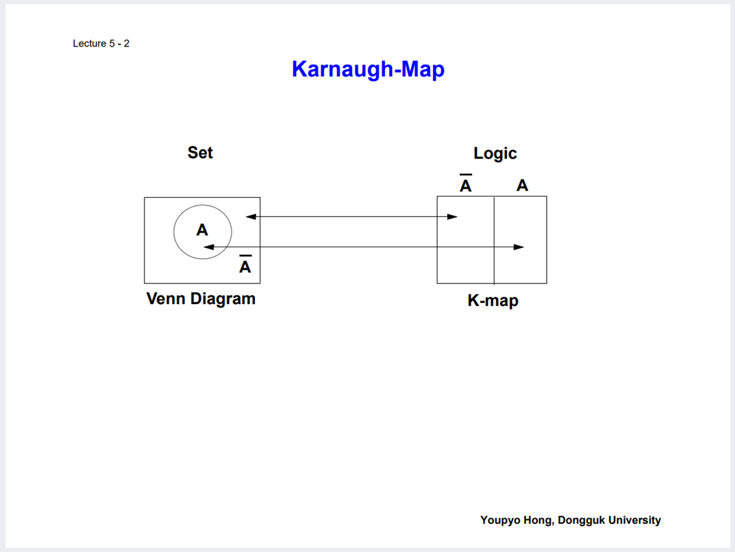 카르노맵은 집합과 여집합의 관계를 표형태로 표현해낸다는 개념이 기저. 즉 MECE하다.