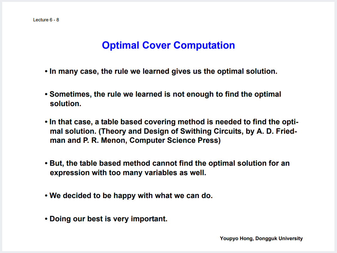 Lecture6 : Optimal Karnaugh-Map Simplication