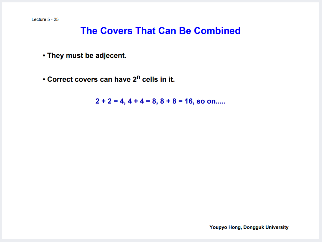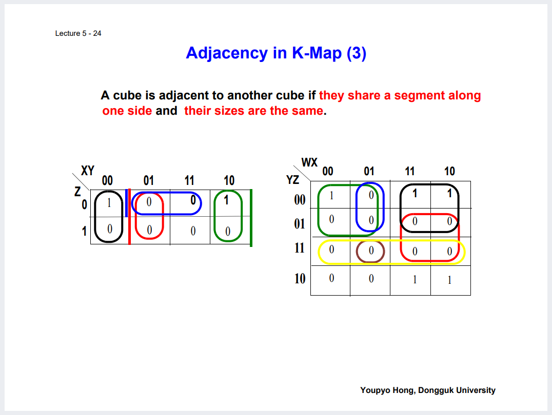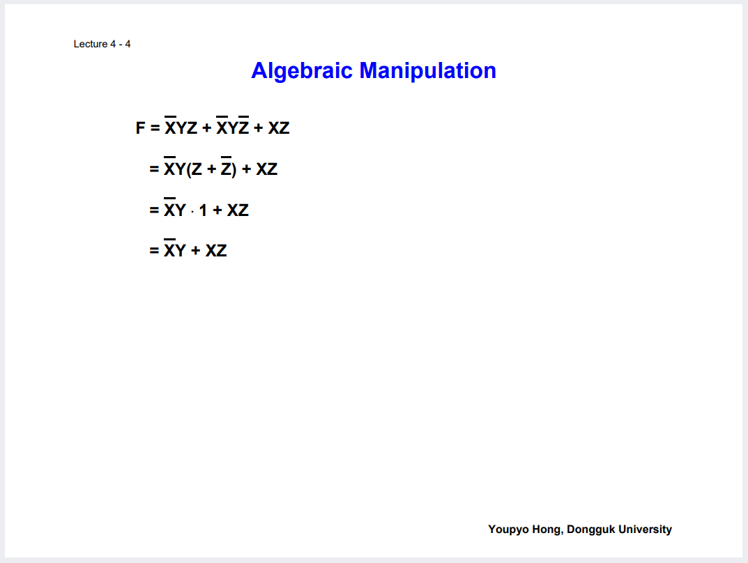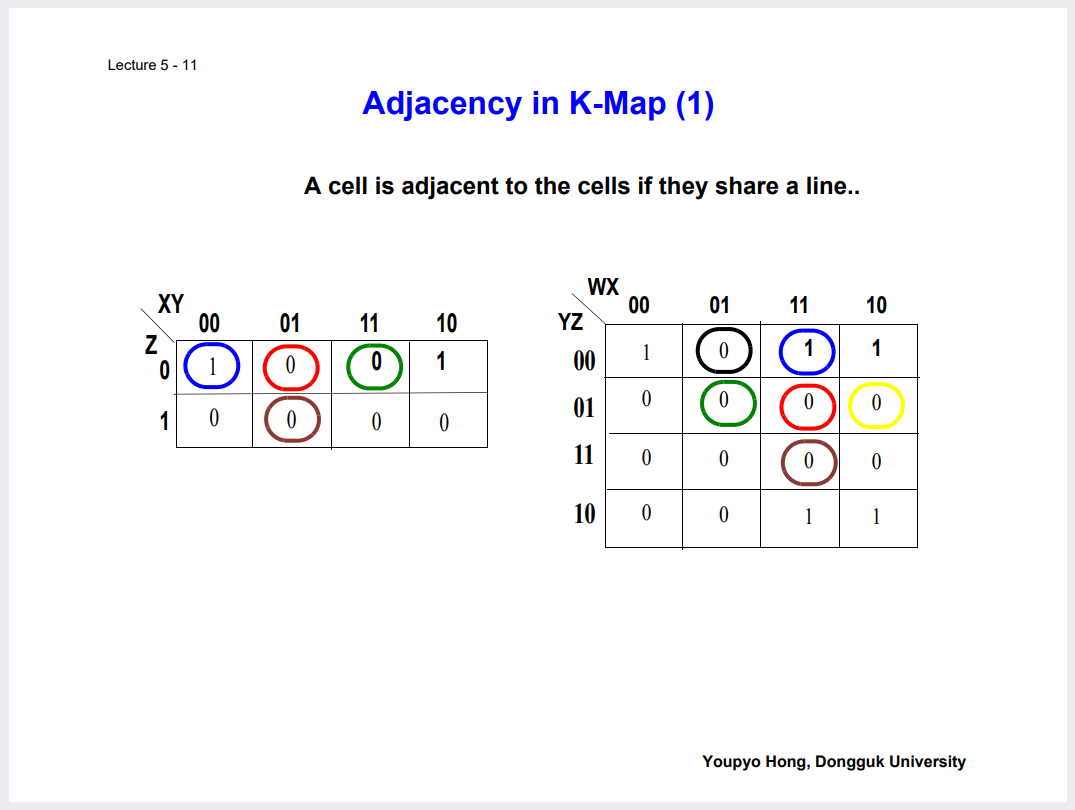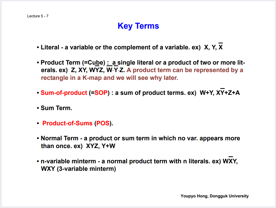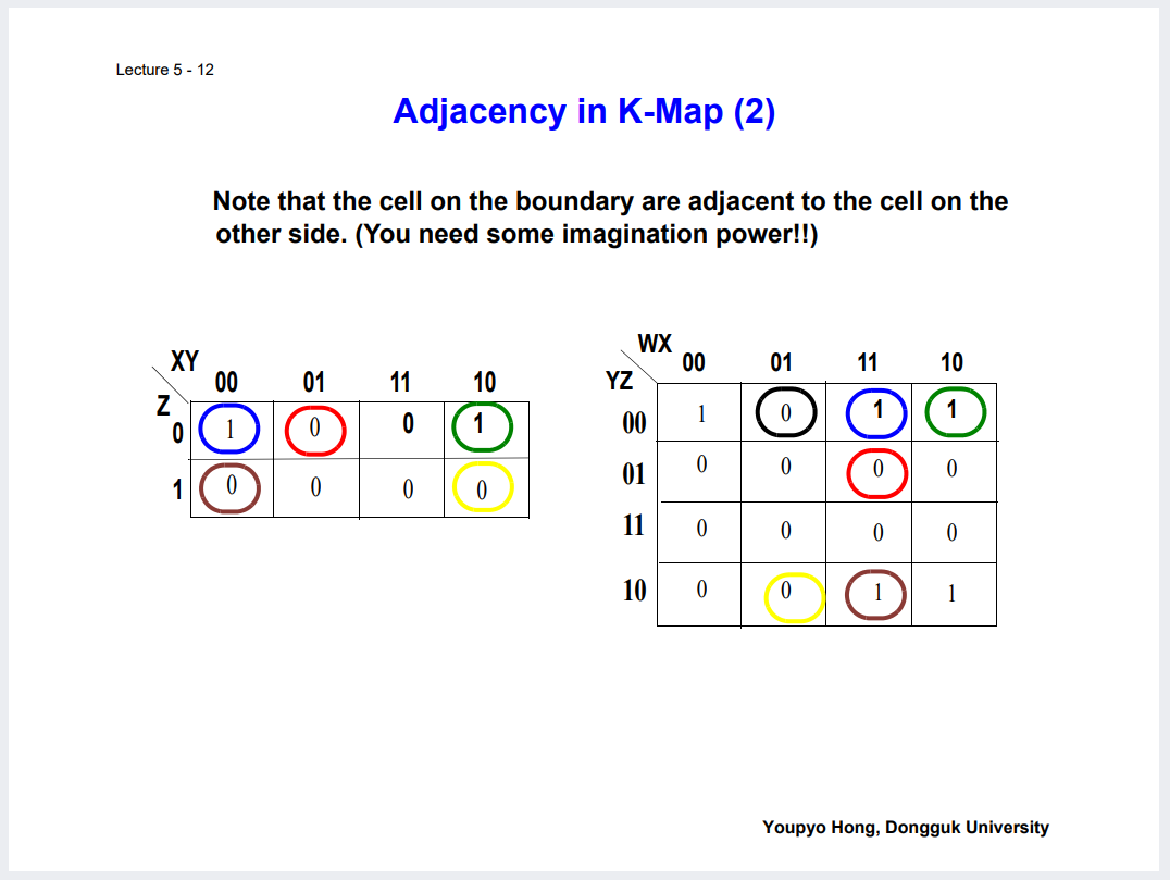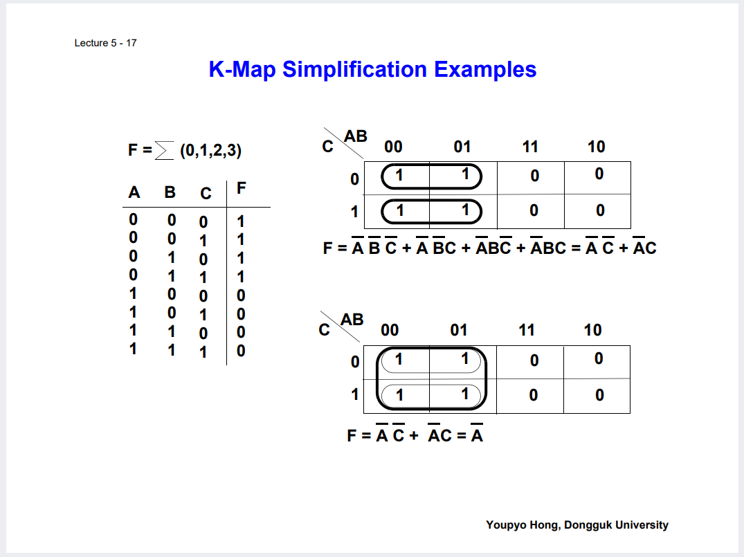및 그러한 성질을 이용해 인접항들끼리 묶어 단순화 최소 표현 하는 것 등.