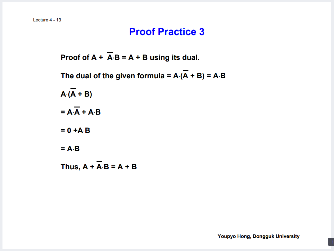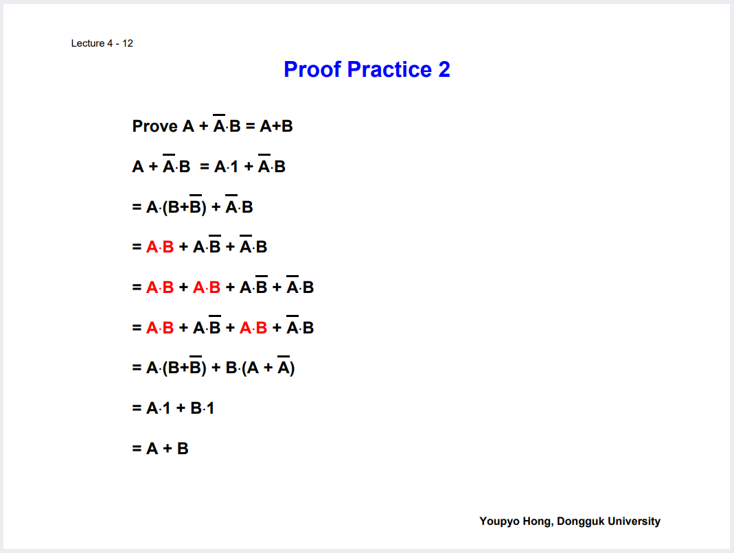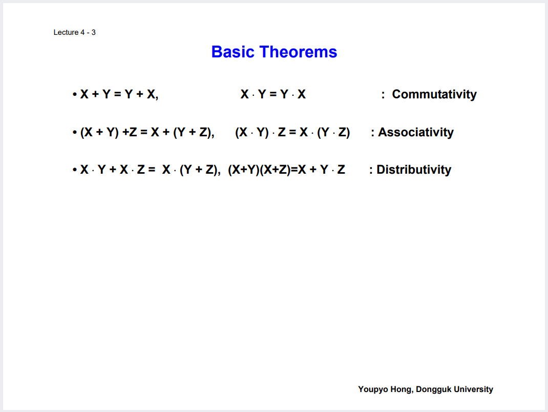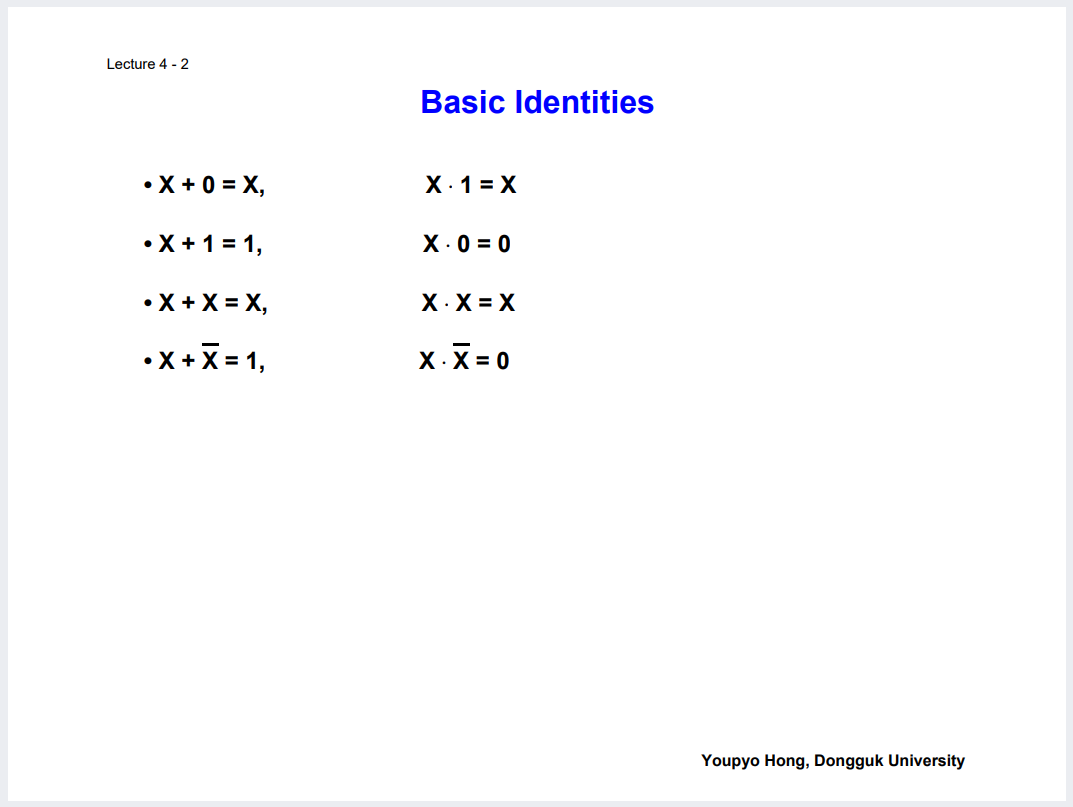 논리연산들이 갖는 기본적인 성질. 이건 외우고 있어야 함.