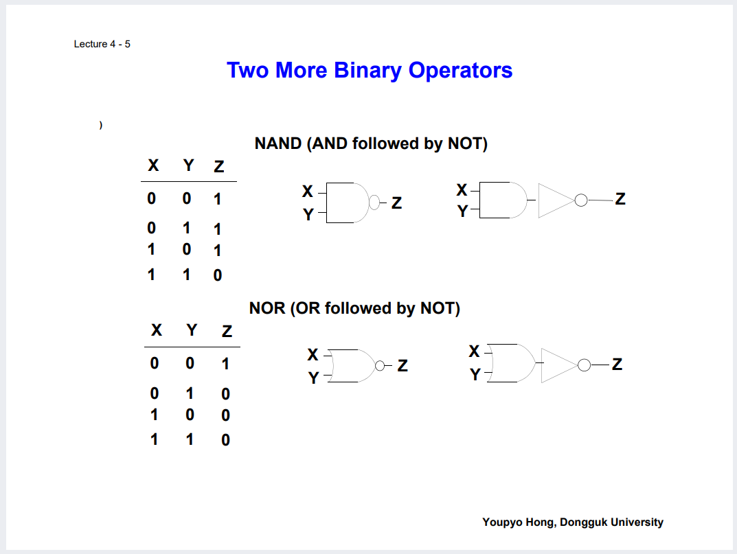 AND OR NOT 말고도 NAND 와 NOR도 존재한다.