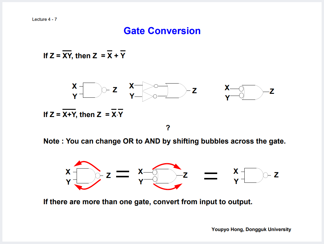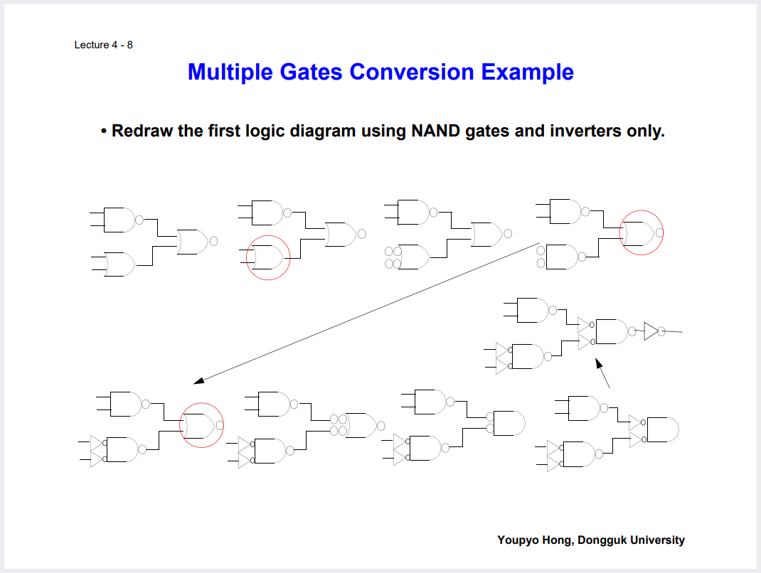 AND OR로 이용된 그림은 NAND NOR 만으로도 그릴 수 있다. 뭐 인버터는 당연하고.