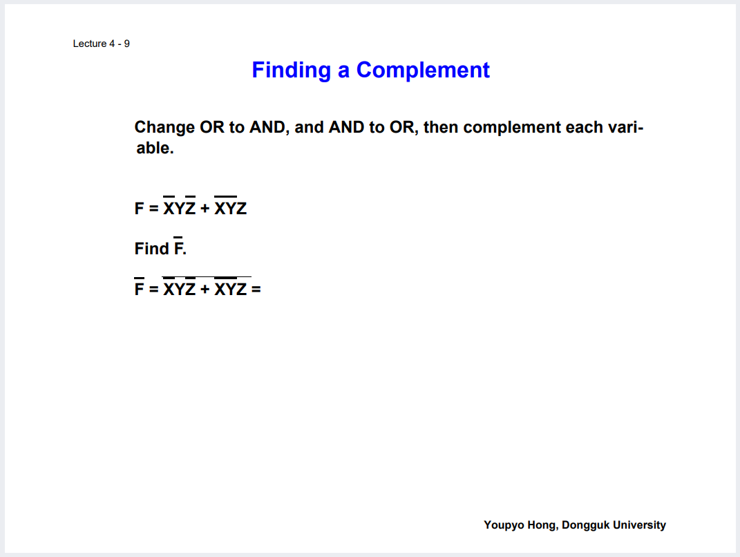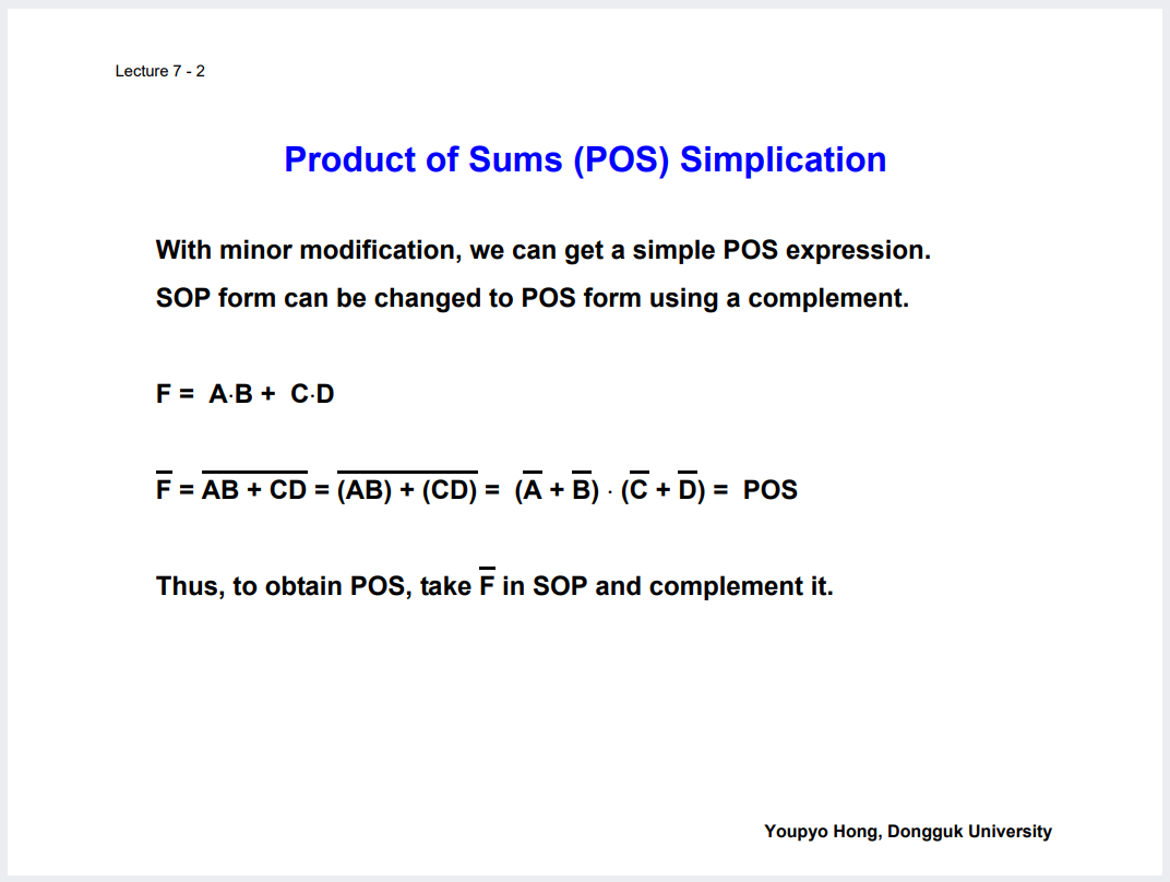 SOP와 POS는 Complement 관계를 통해 변환시킬 수 있다.