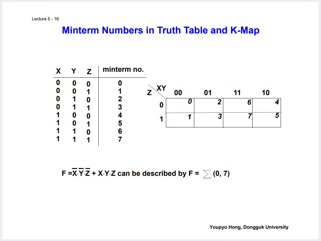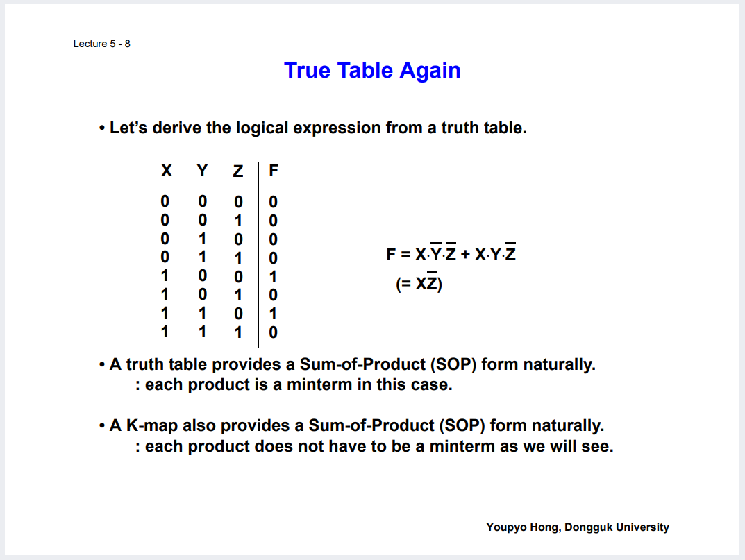 Logical Expression에 SOP같은게 있으면 Minterm으로 축소한뒤 Truth Table 그린다.