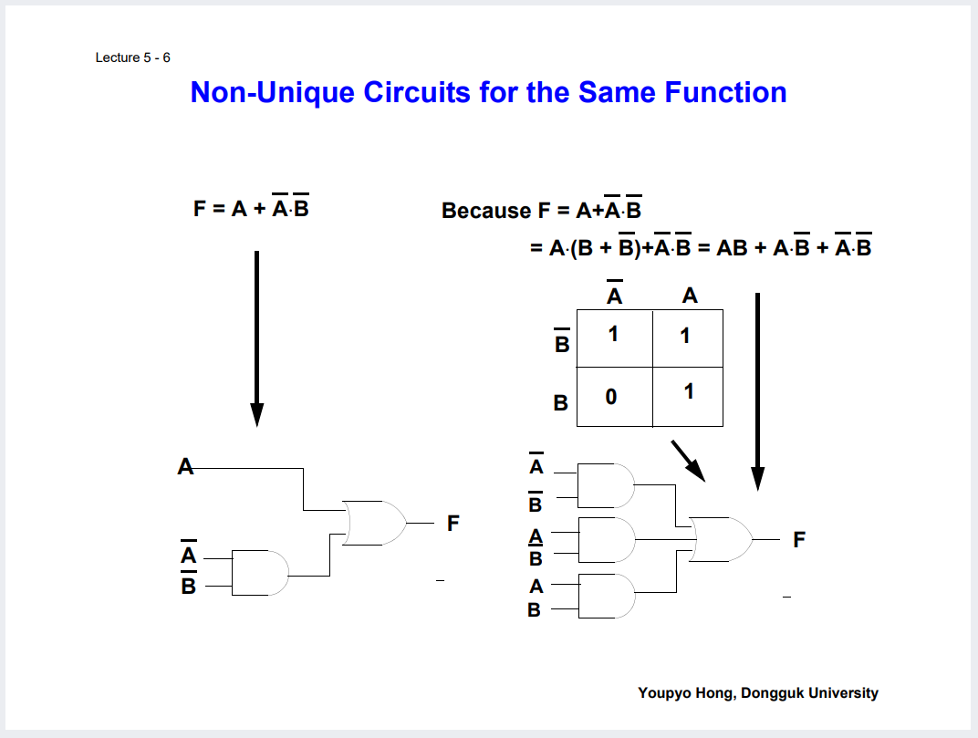 하나의 로직에 대해 여러가지 회로가 존재가능