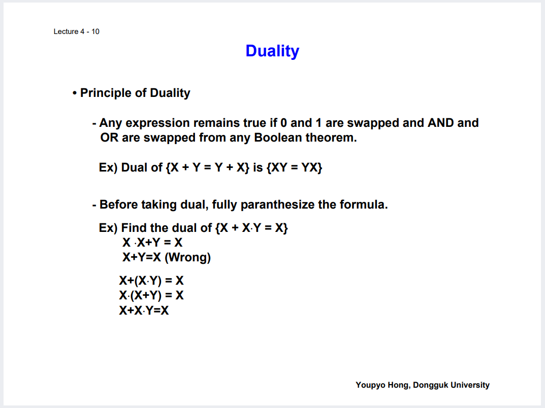 듀얼을 취하는 것은, 양음관계와 괄호관계를 유의해서 뒤집어주면 됨. 명제가 참이면 듀얼도 참.