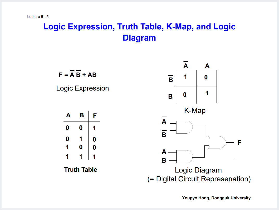 각각의 이름 구분하자. Logic Expression, Truth Table, K-Map, Logic Diagram