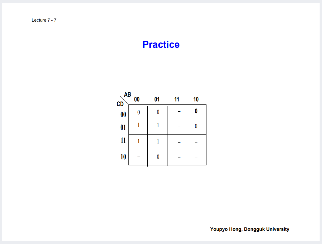 Lecture7 : Miscellaneous on Karnaugh-Map