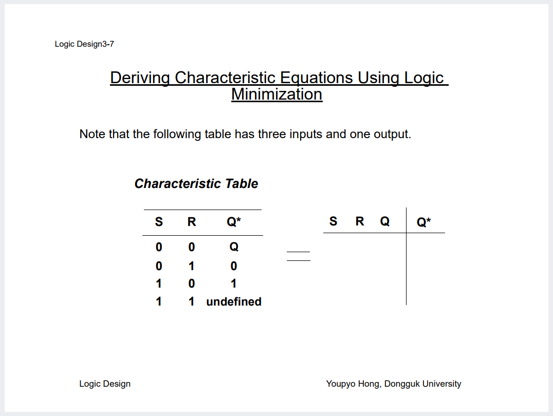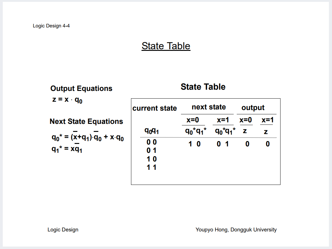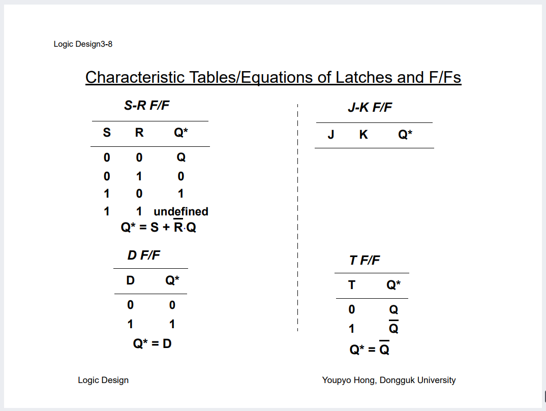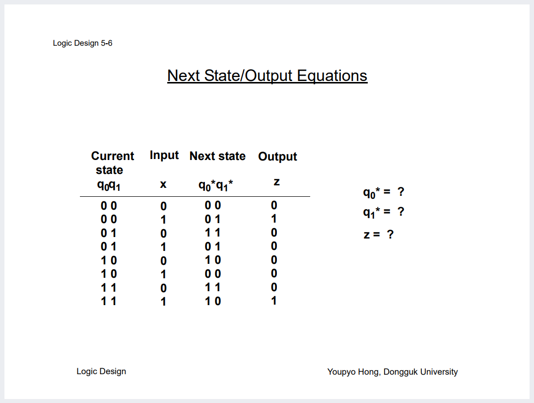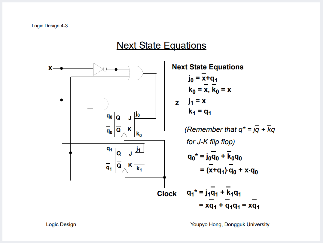 그래서 Sequential 회로에서는 Current State Equations와 Next State Equations를 분리해준다.