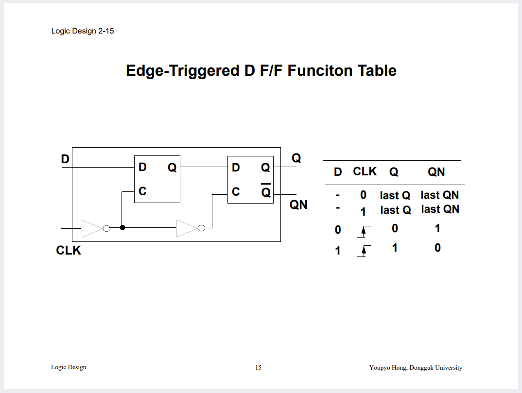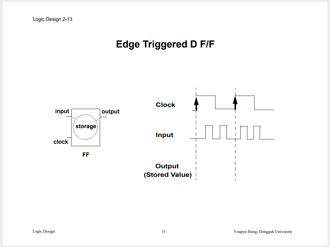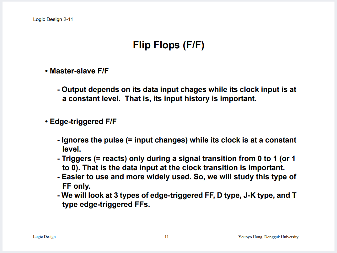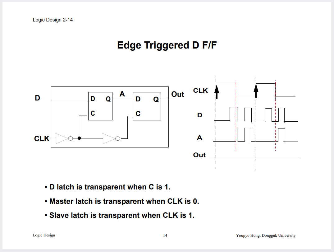 FF는 Master Slave와 Edge-triggered. 둘이 존재하는데, Master Slave는 Async에 가깝다. 우리는 엣지트리거로 다루자.
