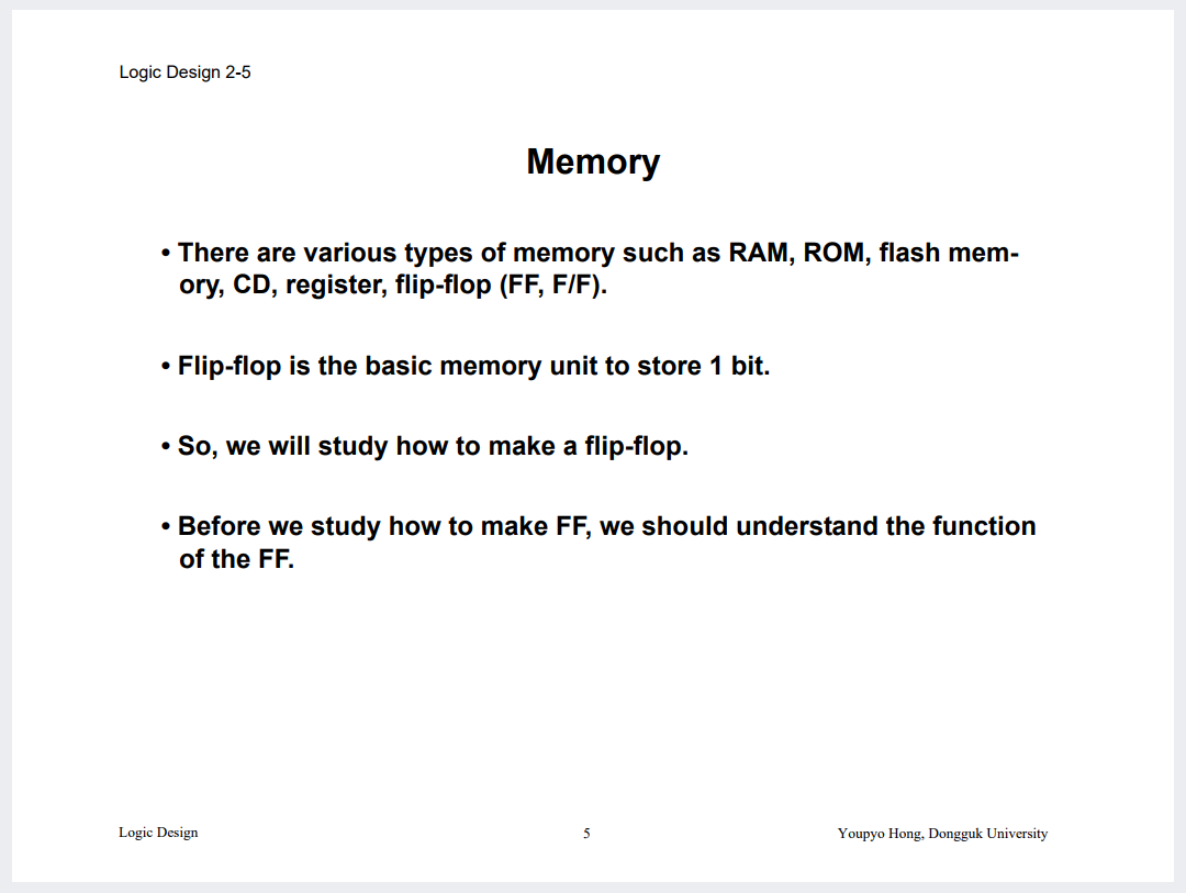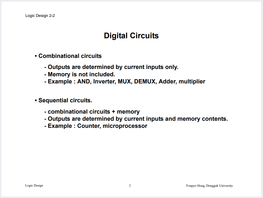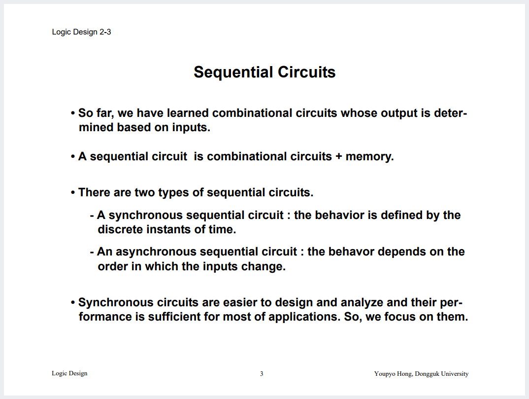 우리가 디지털공학에서는 memory 역할이 없는 Combinational 회로만 다뤘다.