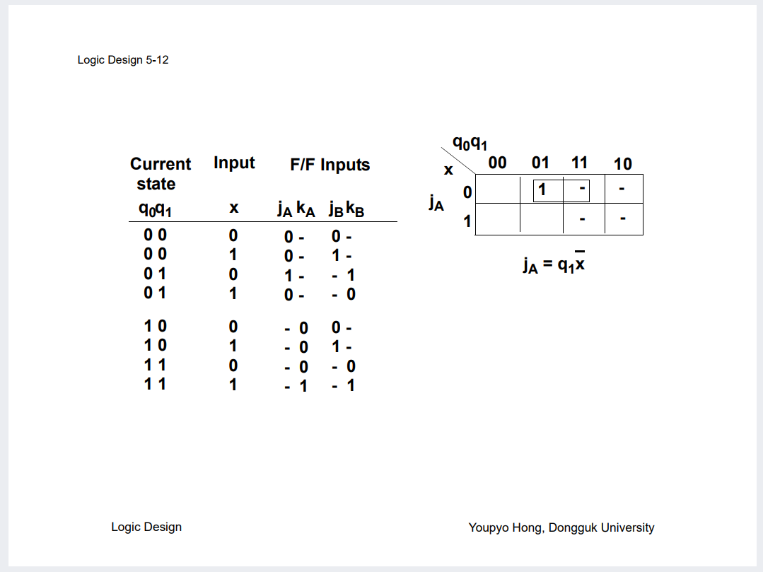 D-FF를 통한 구현이 아닌 JK-FF를 통해 구현해보자.
