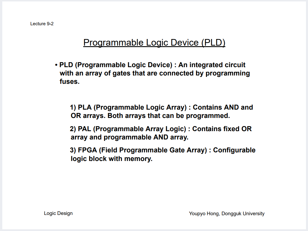 Lecture9 : Programmable Logic Devices
