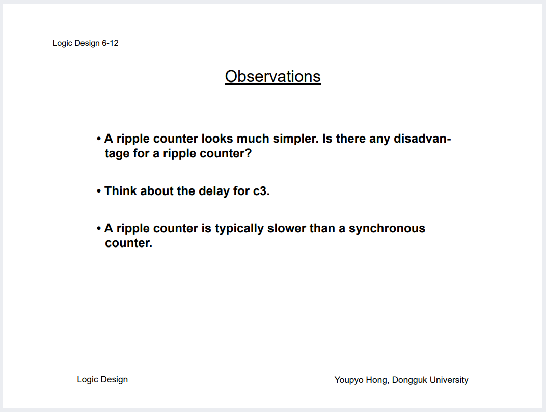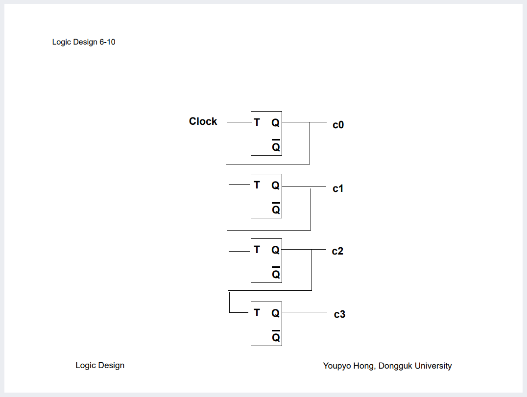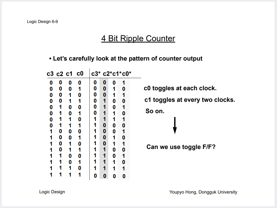 그럼 일반 Counter가 아닌 Ripple Counter도 보자. 얘는 Toggle 의 특성이 있으니 T FF 쓰면 효율적일까?