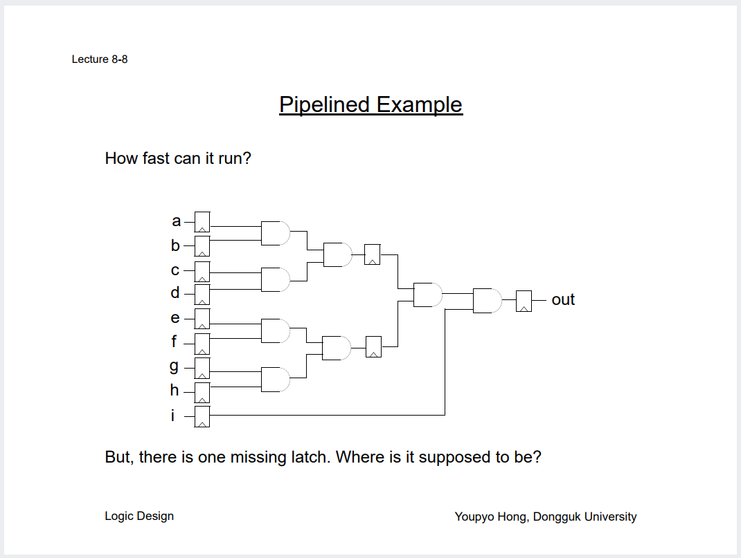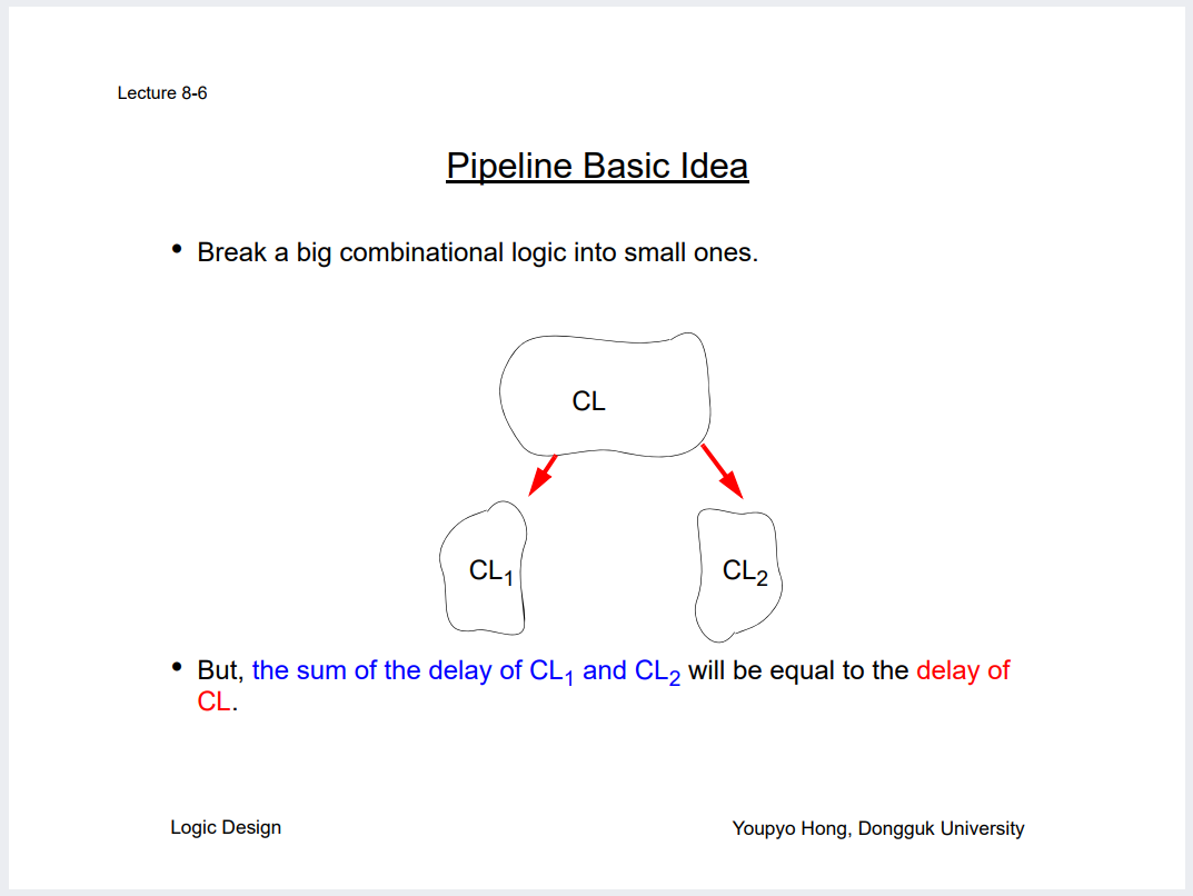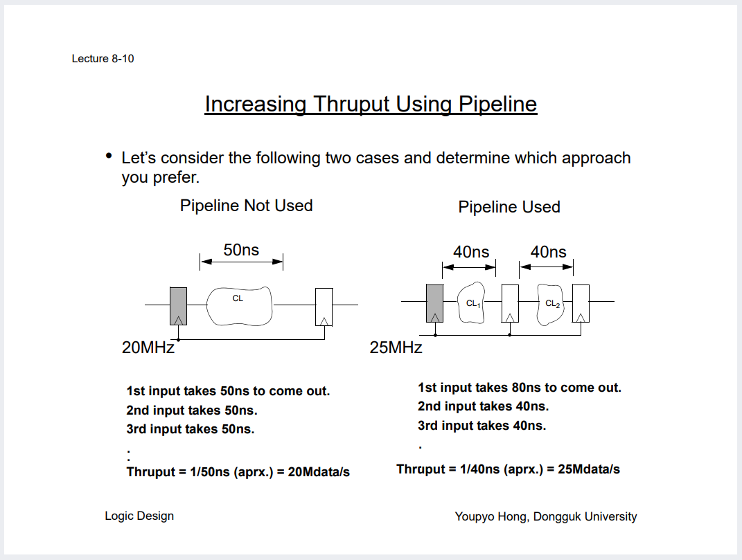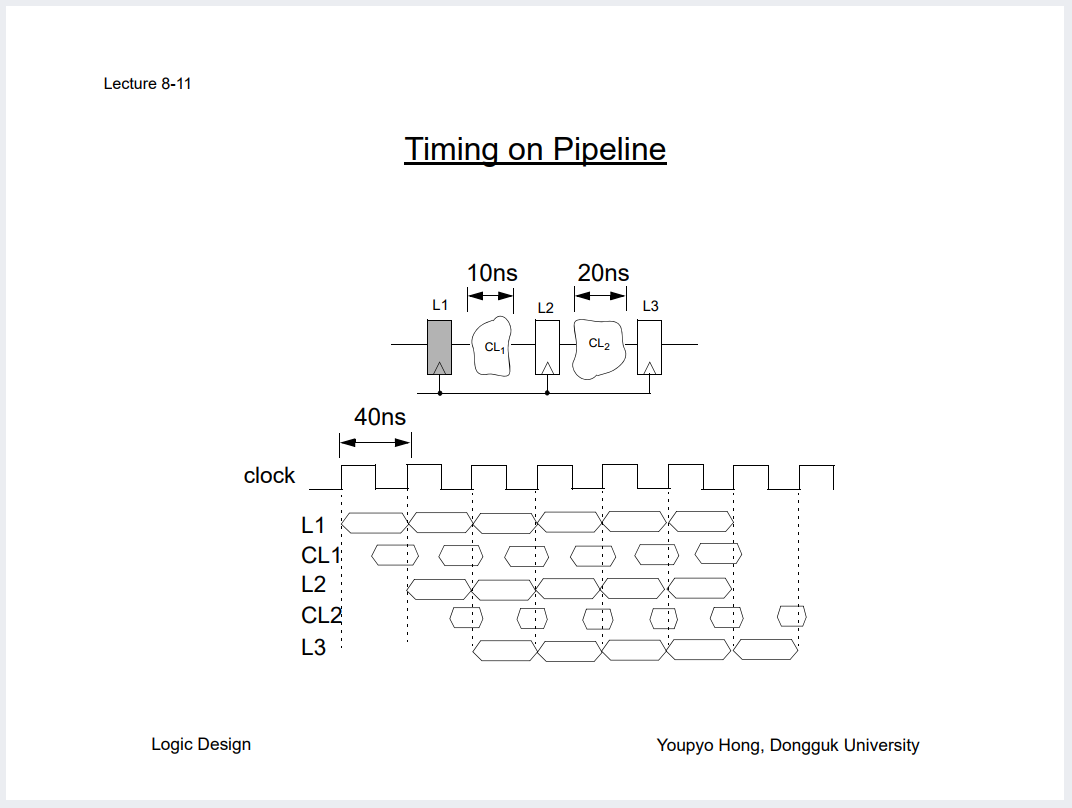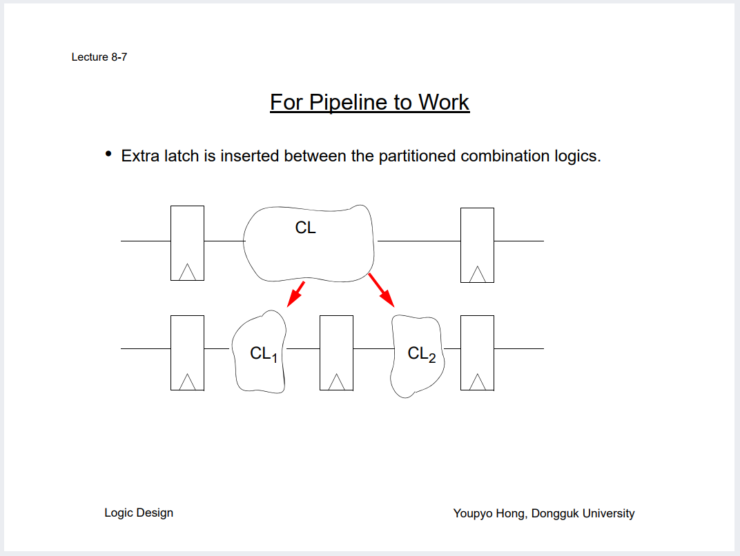 파이프라이닝을 해서 중간에 FF 하나 심으면 어떻게 상황이 변하는지 직접 계산해볼것.