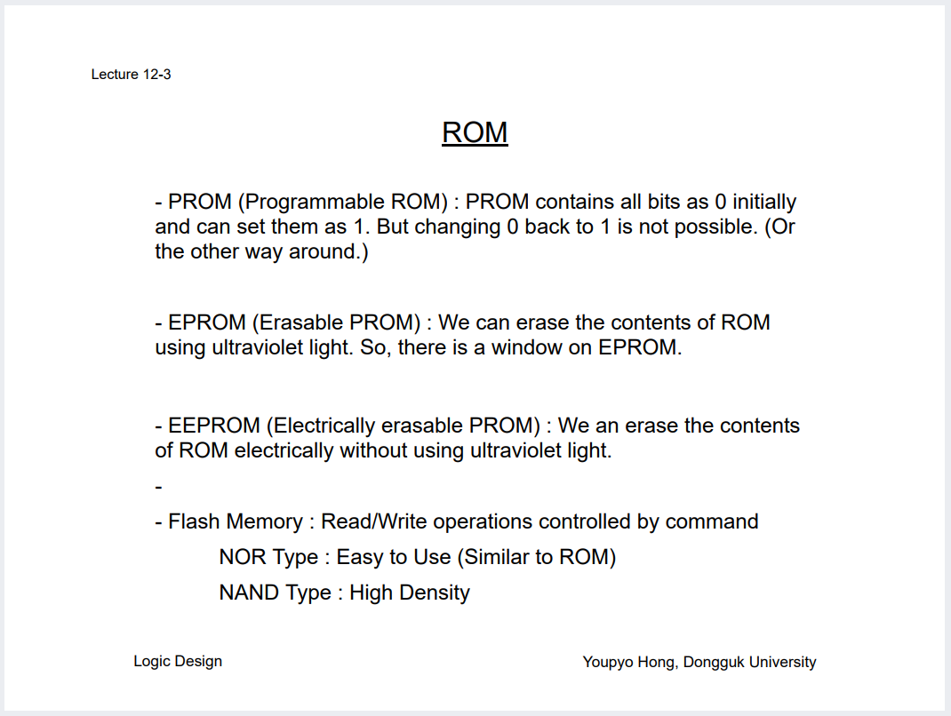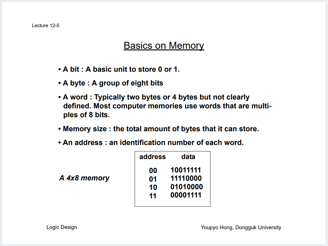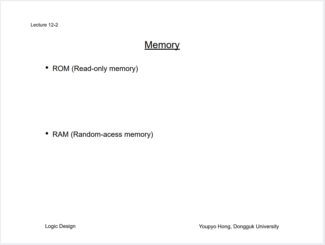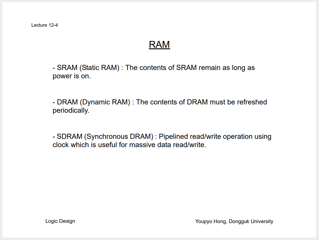 우리는 FlipFlop과 Register만 살펴봤었는데, RAM과 ROM의 특징 그리고 작동 및 제어 방식을 살펴보도록하자.