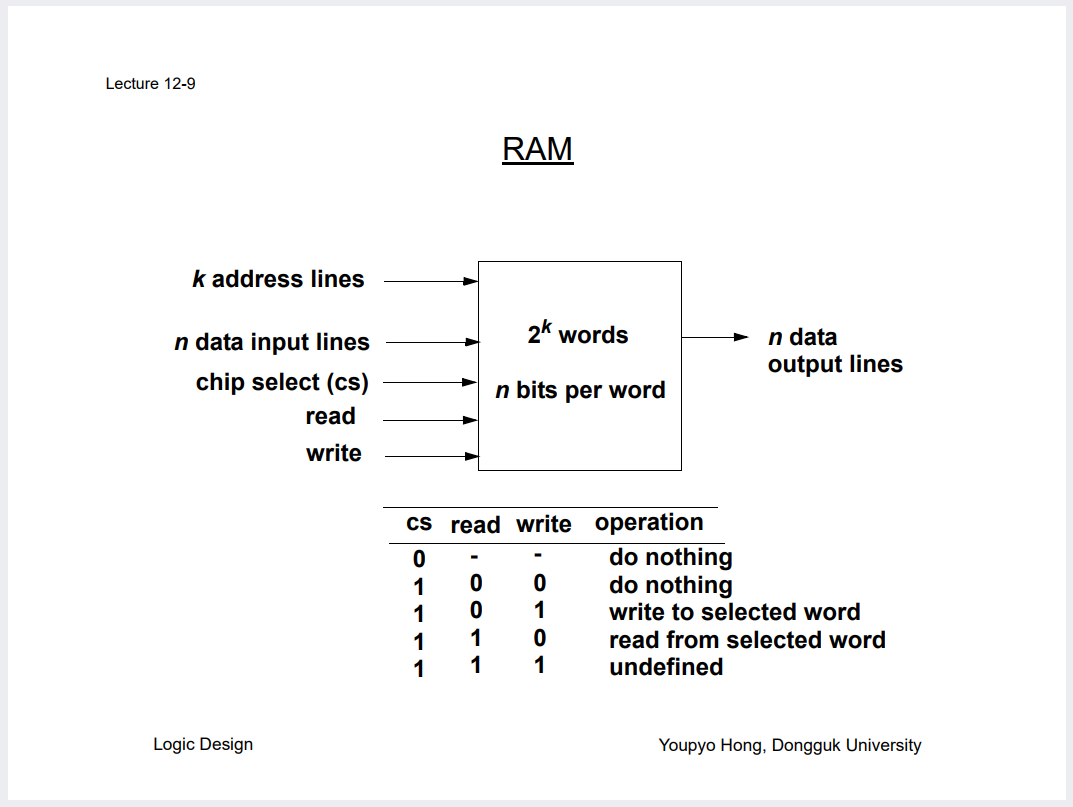 RAM은 조금 더 복잡한 동작이 가능하다. (디테일은 향후 컨트롤러와 함께 보는것으로.)