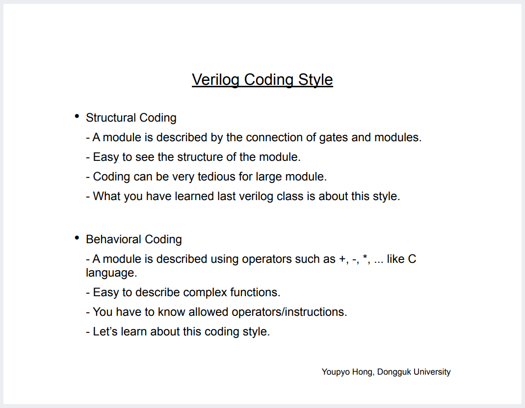 근데 우리가 지금까지 짠 방식은, HDL 하게, Structural 하게 작성한 것. 앞으로는 Behavioral 하게 작성.