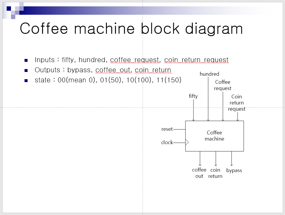 이 상황에 대해서 State와 I/O에 따라, FSM State Table을 작성해보도록 하자.