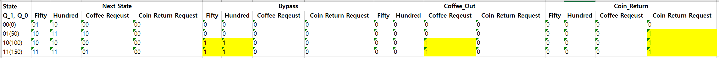 이 상황에 대해서 State와 I/O에 따라, FSM State Table을 작성해보도록 하자.