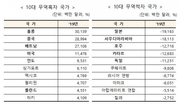 무역흑자 1위는 홍콩...무역적자 1위는 日本 - 한국관세신문