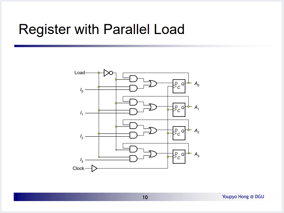 Register With Parallel Load 과제 `timescale 1ns / 1ps module reg_with_load(clk, load, d_in, d_out); input load; input [3:0]d_in; input clk; output [3:0]d_out; reg [3:0]d_out; always @(posedge clk) begin if(load==1) begin d_out Engineering(SoC Design)/Verilog 2022.03.13