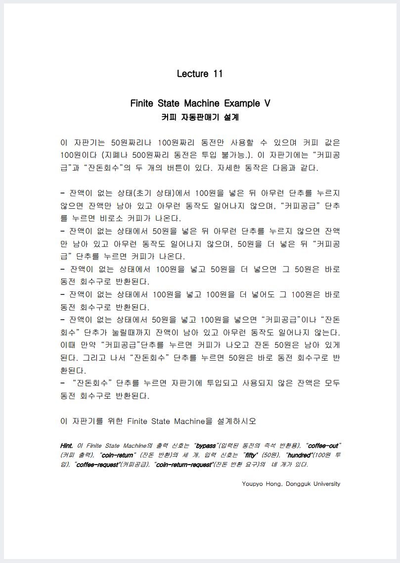 [복습] FSM - Coffee Machine 이 상황에 대해서 State와 I/O에 따라, FSM State Table을 작성해보도록 하자. Engineering(SoC Design)/Verilog 2022.03.13