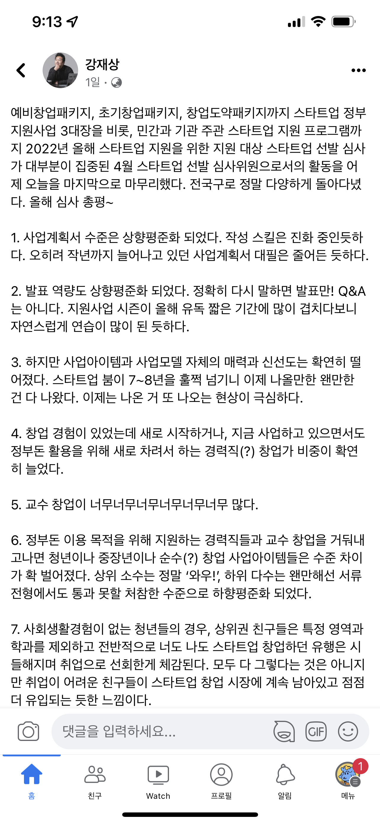 7. 사회생활경험이 없는 청년들의 경우, 상위권 친구들은 특정 영역과 학과를 제외하고 전반적으로 너도 나도 스타트업 창업하던 유행은 시들해지며 취업으로 선회한게 체감된다. 모두 다 그렇다는 것은 아니지만 취업이 어려운 친구들이 스타트업 창업 시장에 계속 남아있고 점점 더 유입되는 듯한 느낌이다.